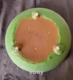 RARE to find this Large Antique Early Roseville Carnelian Matte Green Glaze Arts & Crafts Mission flatfoot console jardinière. This one has the hand-incised Shape Number in pencil on the bottom.